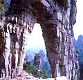 站在会仙桥,四顾奇珍异宝,金光灿灿,绿浪滔滔,蔚为壮观,还可望见祝融峰侧的一巨石,宛如乌龟,人称“金龟朝圣”。桥之险,可谓一绝,真乃是无限风光在险峰。